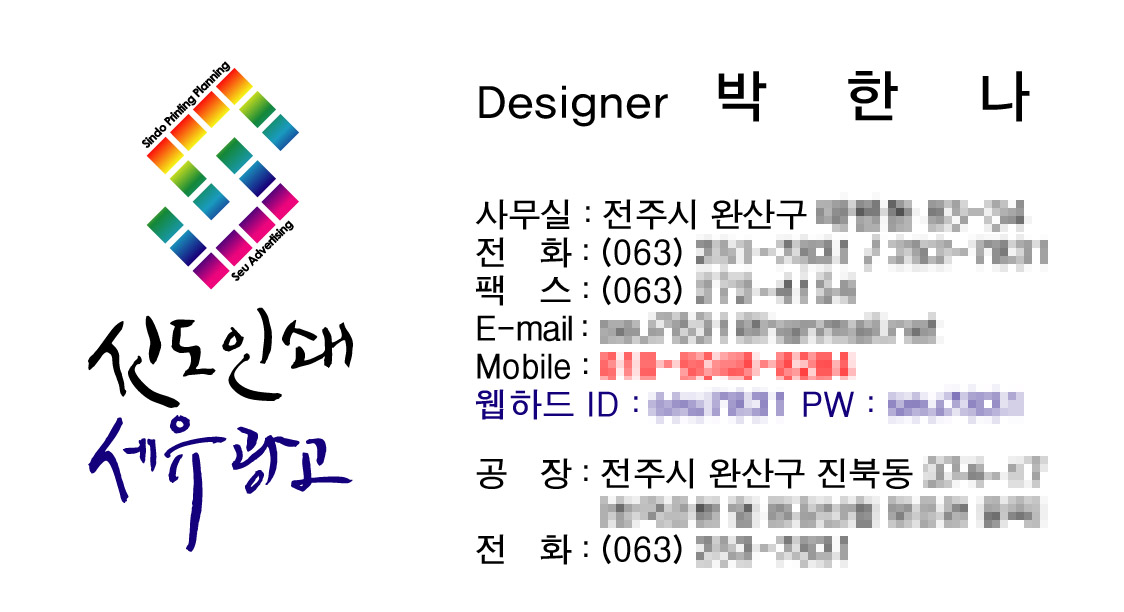 작살님께서 올려주신 캘리로 작업한.. 온새미로 일반 1 9116 2009.12.16 11:08 작살님께서 올려주신 캘리로 작업한.. 저희 명함입니다. 이사하고 일하느라 명함밖에 작업을 못해서 이제야 올려드립니다. 다른것도 만약에 작업한다면 올릴께요 감사합니다. ^^