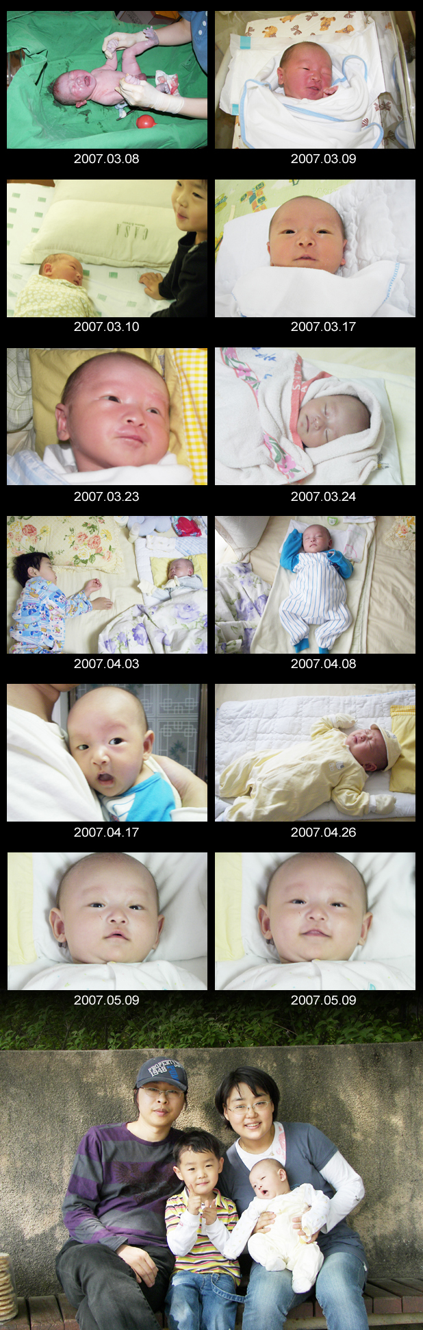 꺄~~ 사진올리셨네요^^// 성장앨범^^b 이야.... 신기하다... 애기 웃는모습이 쥬신님이랑 많이 닮았고~ 마지막에 가족사진 넘 이쁜데요^^ 행복해보입니다^^//