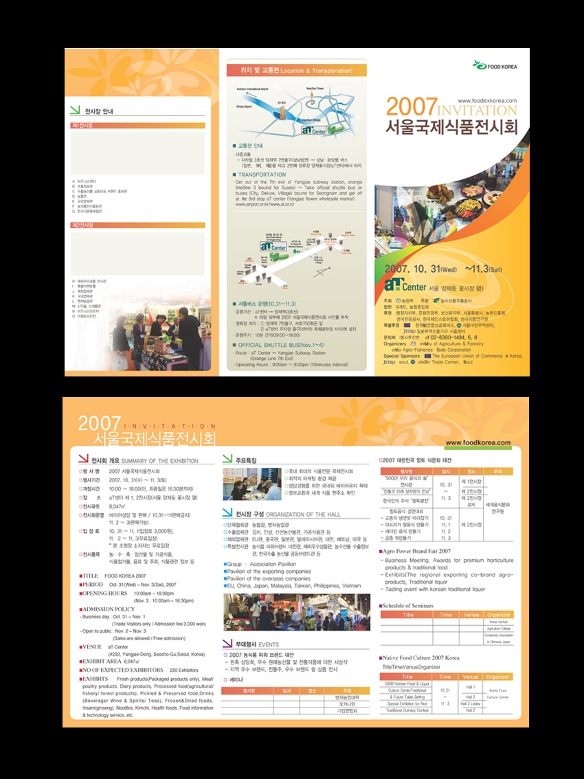 전체적으로 너무 꽉차보이는 느낌이 있네여...색상은 라임이나 오렌지색선택을 잘 하신것 같은데요.. 식욕을 당기는 색임에도 불구하고 식품전이란 느낌이 오지 안는것 같네요^^*