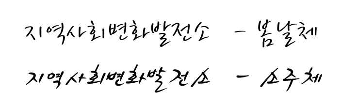 소주체 또는 봄날 서체 부탁드립니다 김은주 일반 0 3851 2009.04.07 10:49 -0001.11.30 00:00 아웃라인.ai (0byte) + 36 > > 소주체와 봄날 서체 부탁드립니다. > 매번 급하게 부탁드리네요~ > > 문구-<지역사회변화발전소> > > 감사합니다 >